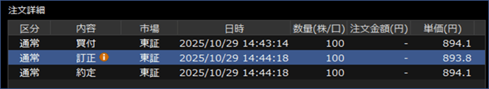 - 訂正済:訂正が完了した注文です。注文数量の一部が約定している場合もあります。