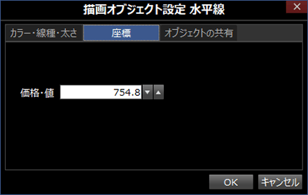 カラー・線種・太さ、足種の共有、ラインの延長線の初期値を設定することができます。なお、足種の共有にチェックを入れると全ての足に表示され、チェックを入れない場合は現在の足のみに表示されます。